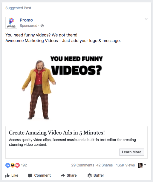 After seeing this ad in their news feed, people are more likely to associate SumoMe as a brand with growth. Easy win. Good for clicks.